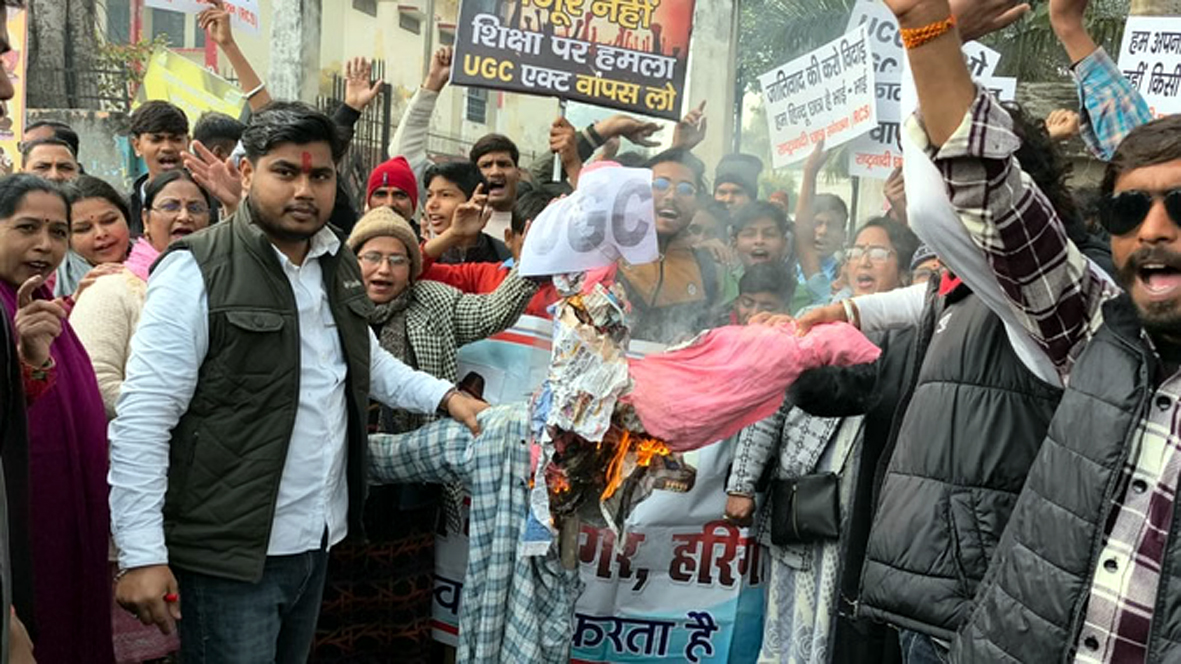 कॉलेजों और विश्वविद्यालयों से जुड़े विश्वविद्यालय अनुदान आयोग (यूजीसी) के नए कानूनों को लेकर देश के कई हिस्सों में विरोध के स्वर उठने लगे हैं। इसी कड़ी में अलीगढ़ में राष्ट्रवादी छात्र संगठन और अखिल भारतीय क्षत्रिय महासभा ने अलग-अलग तरीकों से अपना विरोध दर्ज कराया। अलीगढ़ में राष्ट्रवादी छात्र संगठन के कार्यकर्ताओं ने कलेक्ट्रेट परिसर में प्रदर्शन करते हुए यूजीसी के नए कानूनों को वापस लेने की मांग की। इस दौरान नारेबाजी की गई और यूजीसी का प्रतीकात्मक पुतला भी दहन किया गया। प्रदर्शनकारियों ने राष्ट्रपति के नाम एक ज्ञापन प्रशासन को सौंपा।