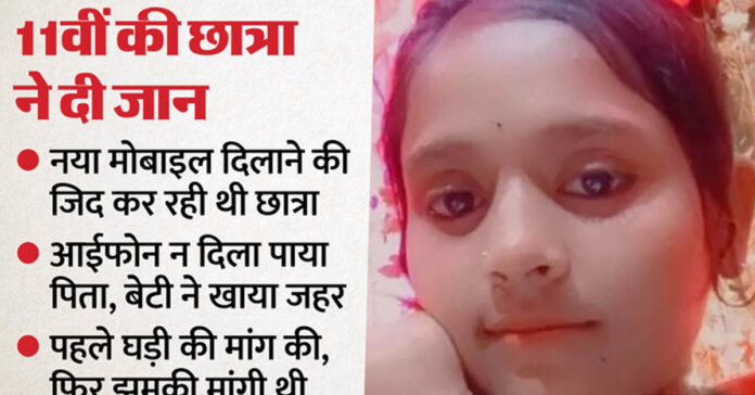 जालौन जिले के मुहम्मदाबाद क्षेत्र से एक दिल दहला देने वाली घटना सामने आई है, जहां आईफोन न मिल पाने से आहत 11वीं कक्षा की छात्रा ने जहर खा लिया। हालत बिगड़ने पर परिजन उसे मेडिकल कॉलेज लेकर पहुंचे, लेकिन इलाज के दौरान उसकी मौत हो गई। डकोर कोतवाली क्षेत्र के कुसमिलिया गांव निवासी तुलसीराम राजपूत खेती के साथ-साथ ऑटो चलाकर अपने परिवार का पालन-पोषण करते हैं। परिवार में दो बेटियां और एक बेटा है। बड़ी बेटी की शादी हो चुकी है, जबकि छोटी बेटी माया (17) गांव के राजकीय इंटर कॉलेज में कक्षा 11 की छात्रा थी। परिजनों के अनुसार, कुछ समय पहले माया का मोबाइल फोन टूट गया था। इसके बाद से वह नया फोन दिलाने की जिद करने लगी। माया खासतौर पर एक पुराना आईफोन चाहती थी, जिसकी कीमत लगभग 40 हजार रुपये बताई जा रही थी। परिवार की कमजोर आर्थिक स्थिति के चलते पिता उसकी यह मांग तुरंत पूरी नहीं कर पाए।