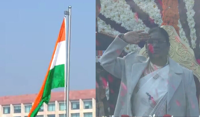 इस अवसर पर राष्ट्रपति द्रौपदी मुर्मू ने कर्तव्य पथ पर राष्ट्रीय ध्वज फहराया। इसके बाद स्वदेशी तकनीक से विकसित 105 मिमी लाइट फील्ड गन से 21 तोपों की सलामी दी गई और राष्ट्रगान गूंज उठा। प्रधानमंत्री नरेंद्र मोदी ने गणतंत्र दिवस से पूर्व दिल्ली के राष्ट्रीय युद्ध स्मारक पर जाकर देश के लिए बलिदान देने वाले वीर सैनिकों को श्रद्धांजलि अर्पित की और उन्हें नमन किया।