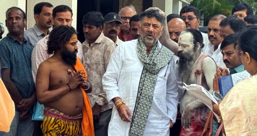 बेंगलुरु में सियासी हलचल: नागा साधुओं ने दिया शिवकुमार को ‘सीएम आशीर्वाद’