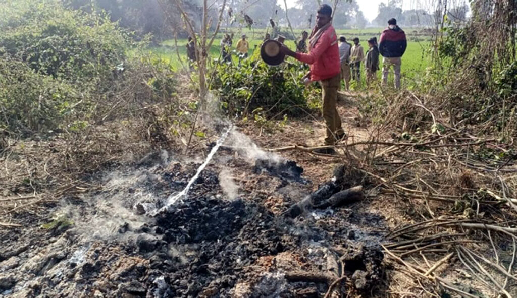 उत्तर प्रदेश के कासगंज जिले के ढोलना थाना क्षेत्र के एक गांव में रिश्तों को शर्मसार करने वाली घटना सामने आई है। कथित रूप से परिवार की झूठी इज्जत बचाने के नाम पर परिजनों ने एक किशोरी की हत्या कर दी और शनिवार रात उसका शव श्मशान में जला दिया। किशोरी दो दिन पहले गांव के ही एक युवक के साथ घर से आगरा चली गई थी। रविवार सुबह घटना की जानकारी मिलते ही पुलिस गांव पहुंची। श्मशान में जल रही चिता को पानी डालकर बुझाया गया और जले हुए अवशेषों को कब्जे में लेकर पोस्टमार्टम के लिए भेजा गया। पुलिस के पहुंचने से पहले ही मृतका के परिजन घर में ताला लगाकर फरार हो चुके थे। अपर पुलिस अधीक्षक सुशील कुमार और सीओ सदर आंचल चौहान फॉरेंसिक टीम के साथ मौके पर पहुंचे और घटनास्थल की जांच की। पुलिस ने आरोपियों की तलाश के लिए तीन टीमें गठित की थीं। देर शाम दो लोगों को हिरासत में लेकर पूछताछ की गई।