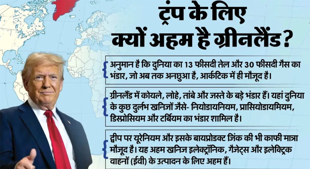 आर्कटिक क्षेत्र में स्थित ग्रीनलैंड, डेनमार्क के अंतर्गत एक स्वायत्त क्षेत्र है और रणनीतिक दृष्टि से बेहद अहम माना जाता है। ट्रंप प्रशासन इसे अमेरिका की राष्ट्रीय सुरक्षा से जोड़कर देख रहा है। हाल के दिनों में यह संकेत भी मिले हैं कि अमेरिका ग्रीनलैंड पर प्रभाव या नियंत्रण बढ़ाने के विकल्पों पर विचार कर रहा है, जिसमें सैन्य विकल्प भी शामिल हो सकते हैं।