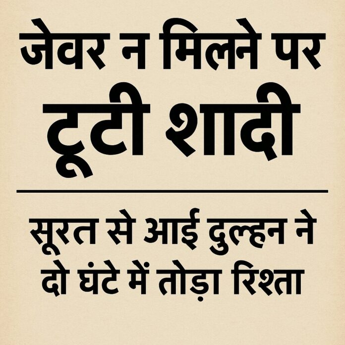 मथुरा के होली गेट क्षेत्र में रविवार रात एक शादी उस समय विवाद में बदल गई जब सूरत से आई दुल्हन ने सात फेरे लेने के कुछ ही घंटे बाद रिश्ता तोड़ दिया। कारण था — दुल्हन के लिए जेवर न लाना।