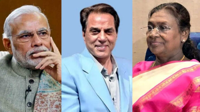 राष्ट्रपति मुर्मू ने एक्स पर शोक व्यक्त करते हुए कहा कि धर्मेंद्र का जाना भारतीय सिनेमा के लिए एक “अपूरणीय क्षति” है। उन्होंने लिखा कि धर्मेंद्र अपने शानदार करियर में एक से बढ़कर एक यादगार किरदार निभाकर सिनेमा प्रेमियों के दिलों में हमेशा के लिए बस गए। उन्होंने दिवंगत अभिनेता के परिवार और प्रशंसकों के प्रति संवेदनाएं व्यक्त कीं।