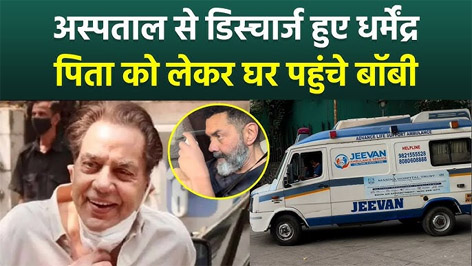 जानकारी के अनुसार, अभिनेता को सुबह लगभग 7:30 बजे एम्बुलेंस से उनके घर लाया गया। उनके बेटे बॉबी देओल अपनी कार से एम्बुलेंस के पीछे-पीछे घर तक पहुंचे। इस दौरान मीडिया के कैमरों ने उन्हें अस्पताल के बाहर सुबह 7:00 बजे स्पॉट किया।