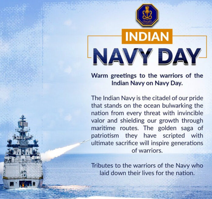 भारतीय नौसेना दिवस के अवसर पर पूरा देश अपने समुद्री योद्धाओं को नमन कर रहा है। प्रधानमंत्री नरेंद्र मोदी, गृहमंत्री अमित शाह और रक्षा मंत्री राजनाथ सिंह समेत कई शीर्ष नेताओं ने नौसैनिकों को साहस, समर्पण और राष्ट्रसेवा की भावना के लिए बधाई व शुभकामनाएं दीं।