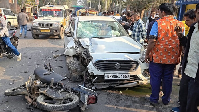 15 फीट उछलकर गिरा बाइक सवार, सड़क हादसे में युवक की मौत