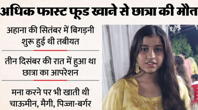 अमरोहा की एक 16 वर्षीय छात्रा की असमय मौत ने फास्ट फूड के खतरों को फिर से सामने ला दिया है। 11वीं कक्षा में पढ़ने वाली अहाना को चाऊमीन, मैगी, पिज्जा और बर्गर खाने का शौक था, जो धीरे-धीरे उसकी सेहत के लिए जानलेवा साबित हुआ। अहाना अमरोहा नगर के मोहल्ला अफगानान निवासी किसान मंसूर खान की सबसे छोटी बेटी थी। परिवार में माता-पिता के अलावा एक बेटा और दो बेटियां हैं। अहाना शहर के हाशमी गर्ल्स इंटर कॉलेज में पढ़ती थी और पढ़ाई में होनहार बताई जा रही है।