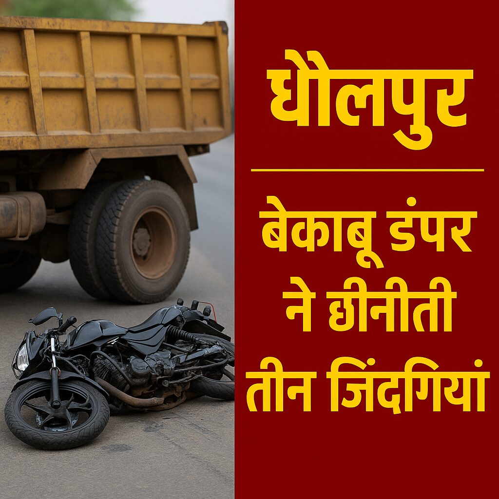 धौलपुर ज़िले के मनिया क्षेत्र में बुधवार दोपहर एक दिल दहला देने वाला सड़क हादसा हुआ। आगरा-मुंबई नेशनल हाईवे-44 पर तेज रफ्तार डंपर ने बाइक सवार परिवार को रौंद दिया। हादसे में मां-बेटी की मौके पर ही मौत हो गई, जबकि घायल मामा ने अस्पताल में दम तोड़ दिया। मनिया थाना पुलिस के अनुसार, मध्यप्रदेश के मुरैना ज़िले के अंबाह थाना क्षेत्र के हाथीगांव निवासी मनोज तोमर (38) अपनी भांजी लाडो (26) और उसकी तीन वर्षीय बेटी रिया के साथ बाइक से घर लौट रहे थे। वे अपनी बीमार बहन को सैंया ब्लॉक के बिरहरू गांव में देखने आए थे।
