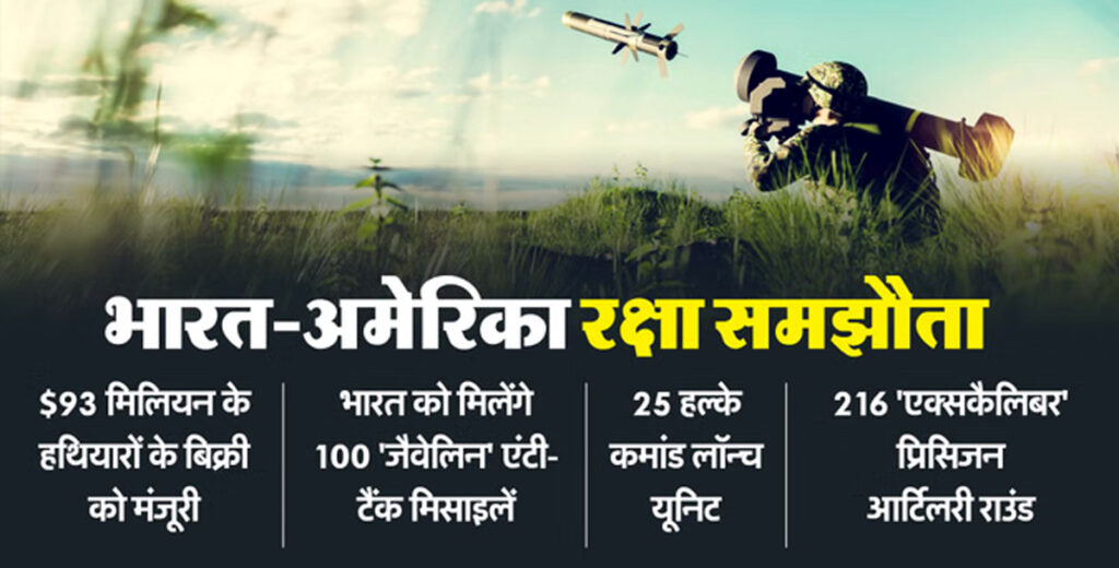अमेरिका ने भारत को एक अहम रक्षा पैकेज बेचने की औपचारिक मंजूरी दे दी है। इस मंजूरी के साथ भारत के लिए 100 ‘जैवेलिन’ एंटी-टैंक मिसाइलें, 25 हल्के कमांड लॉन्च यूनिट (CLU) और 216 ‘एक्सकैलिबर’ प्रिसिजन आर्टिलरी राउंड हासिल करने की प्रक्रिया आगे बढ़ गई है। अमेरिका की डिफेंस सिक्योरिटी कोऑपरेशन एजेंसी (DSCA) ने यह जानकारी अपनी कांग्रेस को भेज दी है, जो किसी भी बड़े रक्षा समझौते से पहले की अनिवार्य प्रक्रिया है।