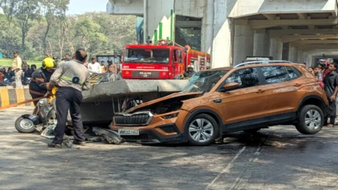 मुंबई के मुलुंड इलाके में मेट्रो निर्माण कार्य के दौरान बड़ा हादसा सामने आया है। जॉनसन गार्डन के पास अंडर-कंस्ट्रक्शन मेट्रो साइट पर स्लैब और पिलर का एक हिस्सा अचानक टूटकर नीचे आ गिरा। इस दुर्घटना में सड़क से गुजर रही एक ऑटो रिक्शा पर मलबा गिरने से उसमें सवार तीन से चार लोग गंभीर रूप से घायल हो गए। वहीं, एक निजी कार भी इस हादसे की चपेट में आने की सूचना है।