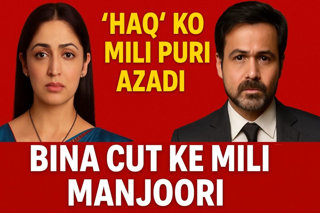 यामी गौतम और इमरान हाशमी स्टारर बहुप्रतीक्षित फिल्म ‘हक’ को आखिरकार सेंसर बोर्ड से हरी झंडी मिल गई है। खास बात यह है कि फिल्म में एक भी सीन पर कैंची नहीं चली, और इसे UA (13+) सर्टिफिकेट के साथ रिलीज़ करने की अनुमति दी गई है। यानी 13 साल से ऊपर के दर्शक इसे परिवार के साथ देख सकेंगे। फिल्म 7 नवंबर 2025 को सिनेमाघरों में दस्तक देने जा रही है। इसके ट्रेलर और विषय ने पहले ही दर्शकों के बीच जिज्ञासा पैदा कर दी है। जंगली पिक्चर्स के बैनर तले बनी ‘हक’ का निर्देशन सुपर्ण एस वर्मा ने किया है। यह फिल्म न केवल भारत में बल्कि यूएई, ऑस्ट्रेलिया, न्यूजीलैंड और यूके जैसे देशों के सेंसर बोर्ड से भी क्लीन चिट पा चुकी है। सभी जगह इसे पारिवारिक रूप से देखने योग्य बताया गया है।
