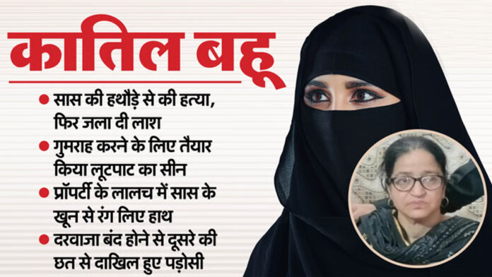 सास की हत्या की चौंकाने वाली साजिश—पहले बेहोश किया, फिर हथौड़े से मारा और जला दिया