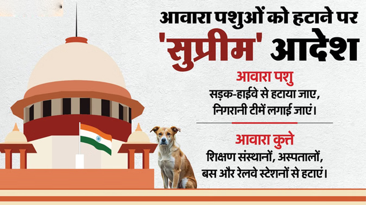 सुप्रीम कोर्ट ने देशभर में बढ़ती आवारा पशुओं और कुत्तों की समस्या पर बड़ा फैसला सुनाया है। जस्टिस विक्रम नाथ, जस्टिस संदीप मेहता और जस्टिस एनवी अंजारिया की तीन सदस्यीय पीठ ने अपने आदेश को तीन हिस्सों में बाँटते हुए सभी राज्यों और केंद्र शासित प्रदेशों को कड़े निर्देश दिए हैं।