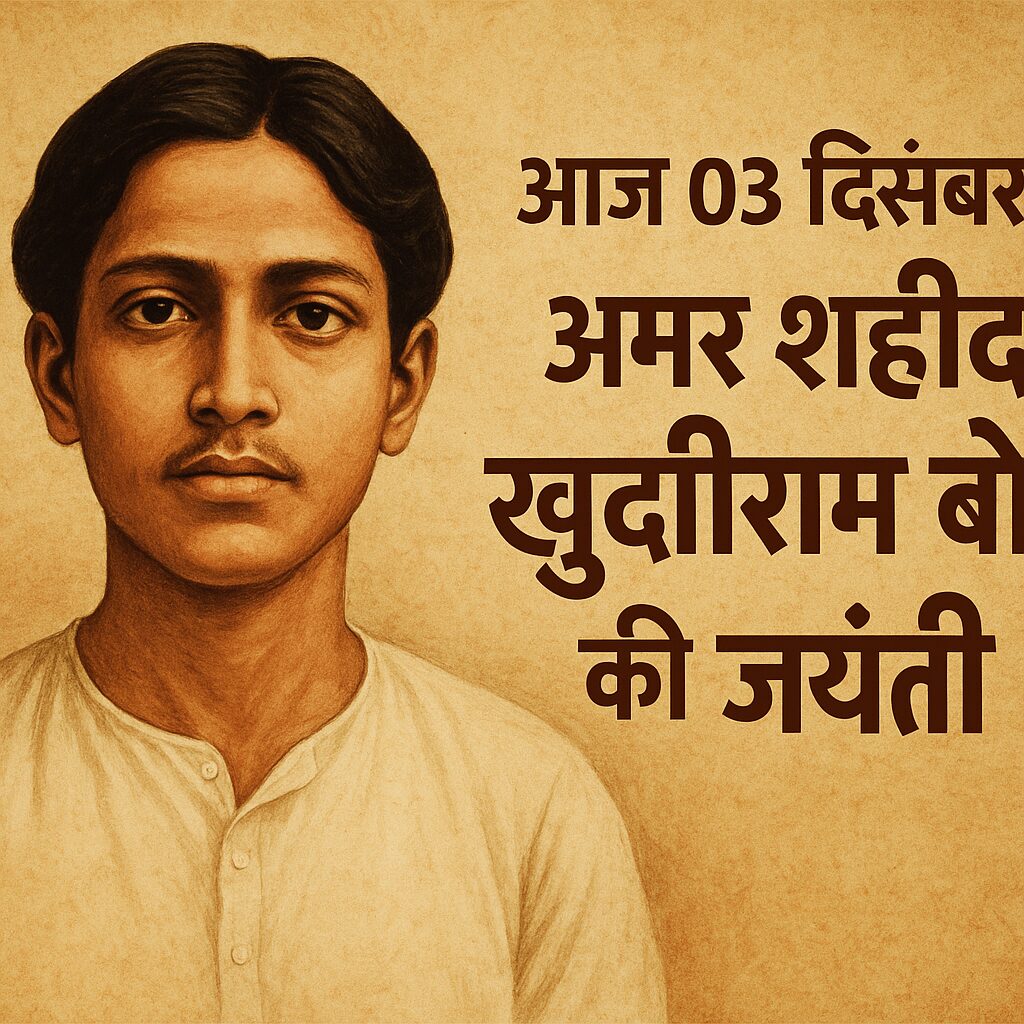 भारतीय स्वतंत्रता संग्राम के इतिहास में 03 दिसंबर का दिन विशेष स्थान रखता है। आज ही के दिन वर्ष 1889 में वीर क्रांतिकारी खुदीराम बोस का जन्म हुआ था। मात्र 18–19 वर्ष की उम्र में देश के लिए फांसी का फंदा स्वीकार कर लेने वाले खुदीराम को भारत के सबसे युवा शहीदों में गिना जाता है। उनकी बहादुरी और देशभक्ति आज भी युवाओं के लिए प्रेरणा है।